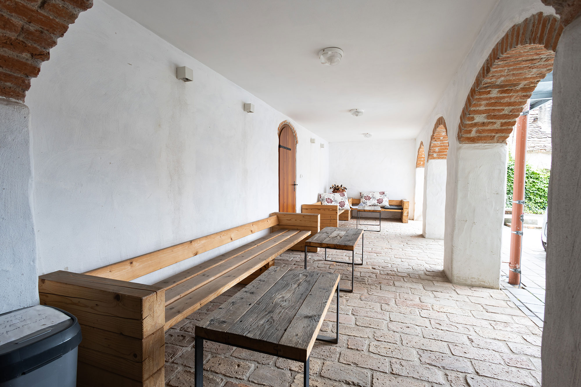 Je situovaný v uzavřeném dvoře, kam svítí slunce a kde vás nebude rušit provoz z ulice. Nachází se v prvním patře a je přístupný po schodech. K apartmánu patří vlastní parkovací místo přímo pod okny a uzamykatelná kóje na kola nebo kočárek. Společné venkovní posezení se nachází přímo pod apartmánem a je doplněné o vlastní toaletu – takže si můžete užít večer venku bez neustálého odbíhání. K dispozici je i vinný sklípek, ideální na posezení s přáteli. Výhled ze dvora vám nabídne zámek jako na dlani.